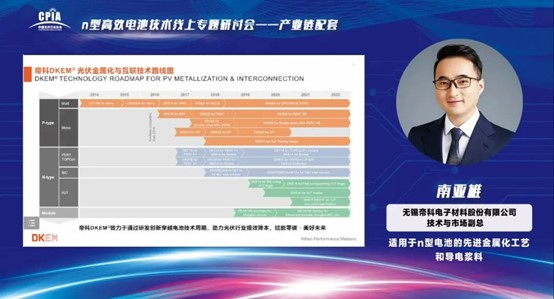 3044AM永利集团股份DKEM®作为光伏金属化浆料领域的代表受邀作《适用于n型电池的先进金属化工艺与导电浆料》的主题分享。